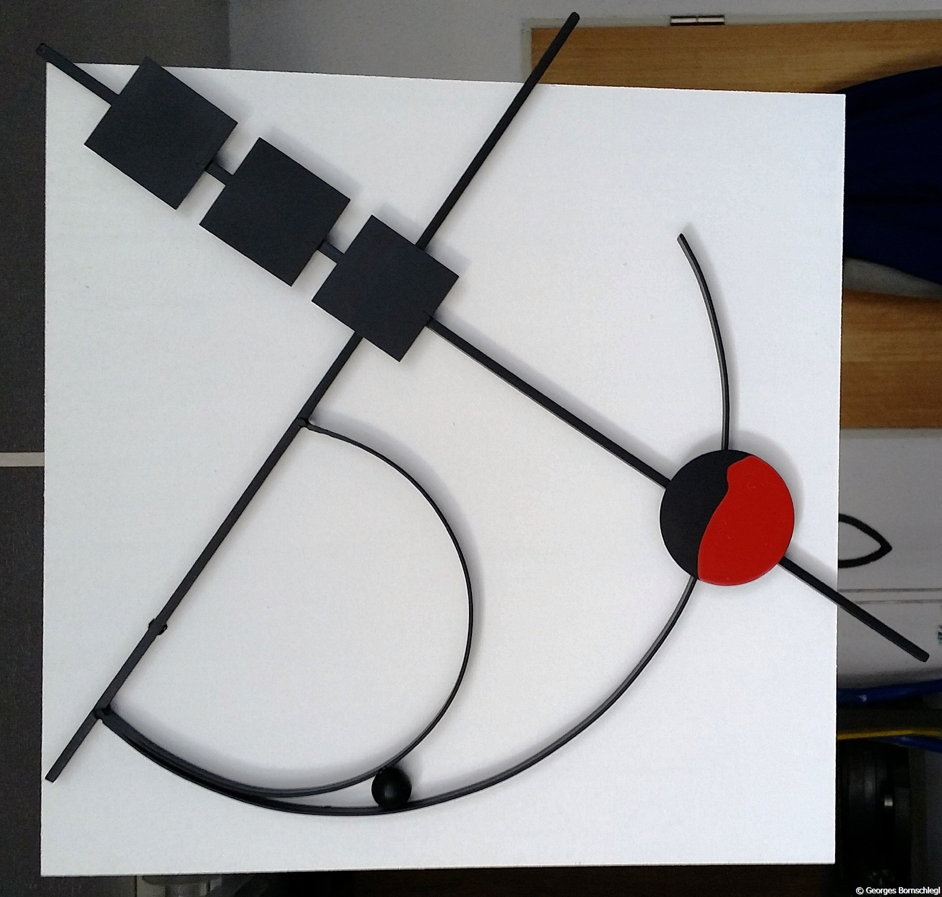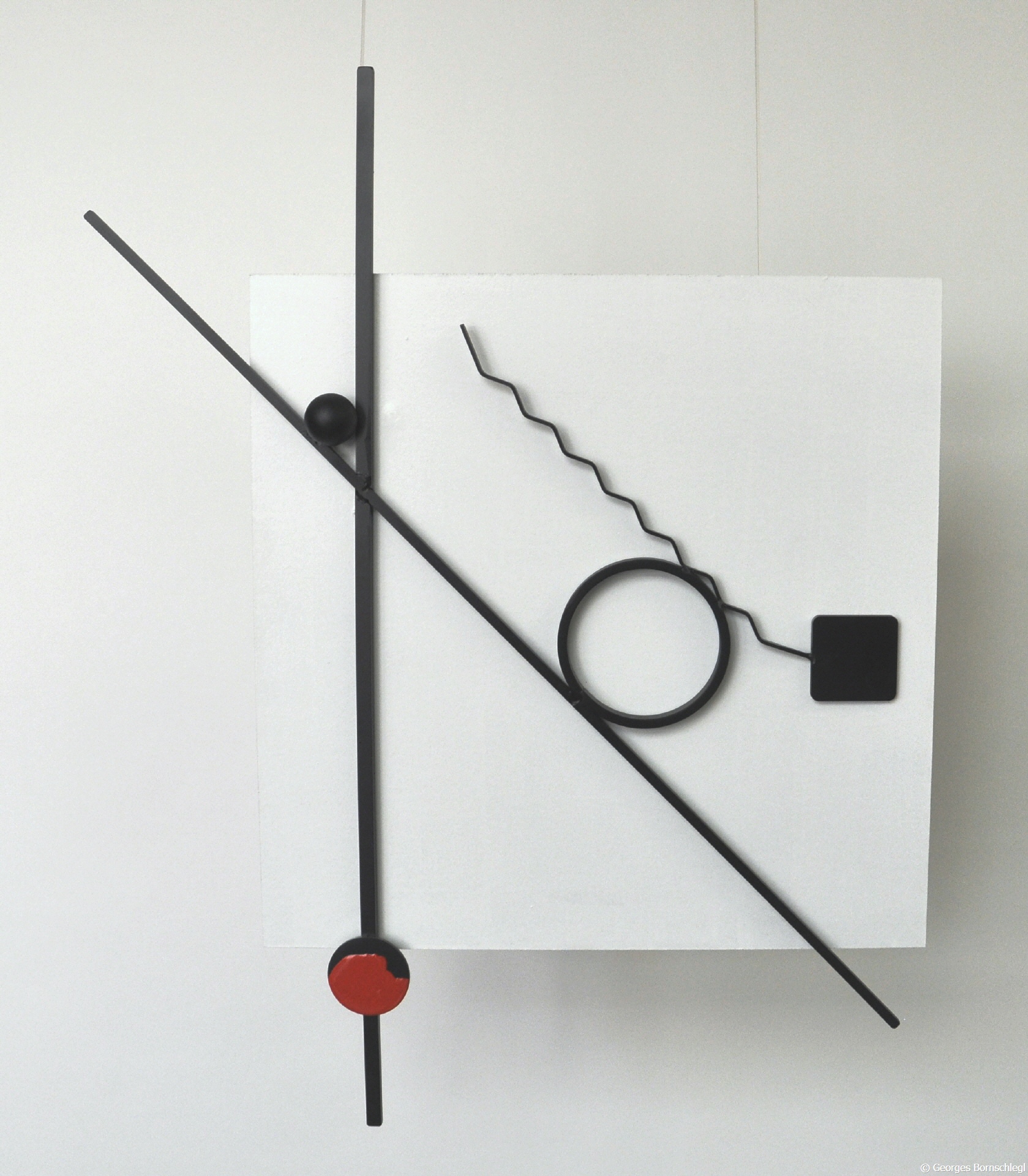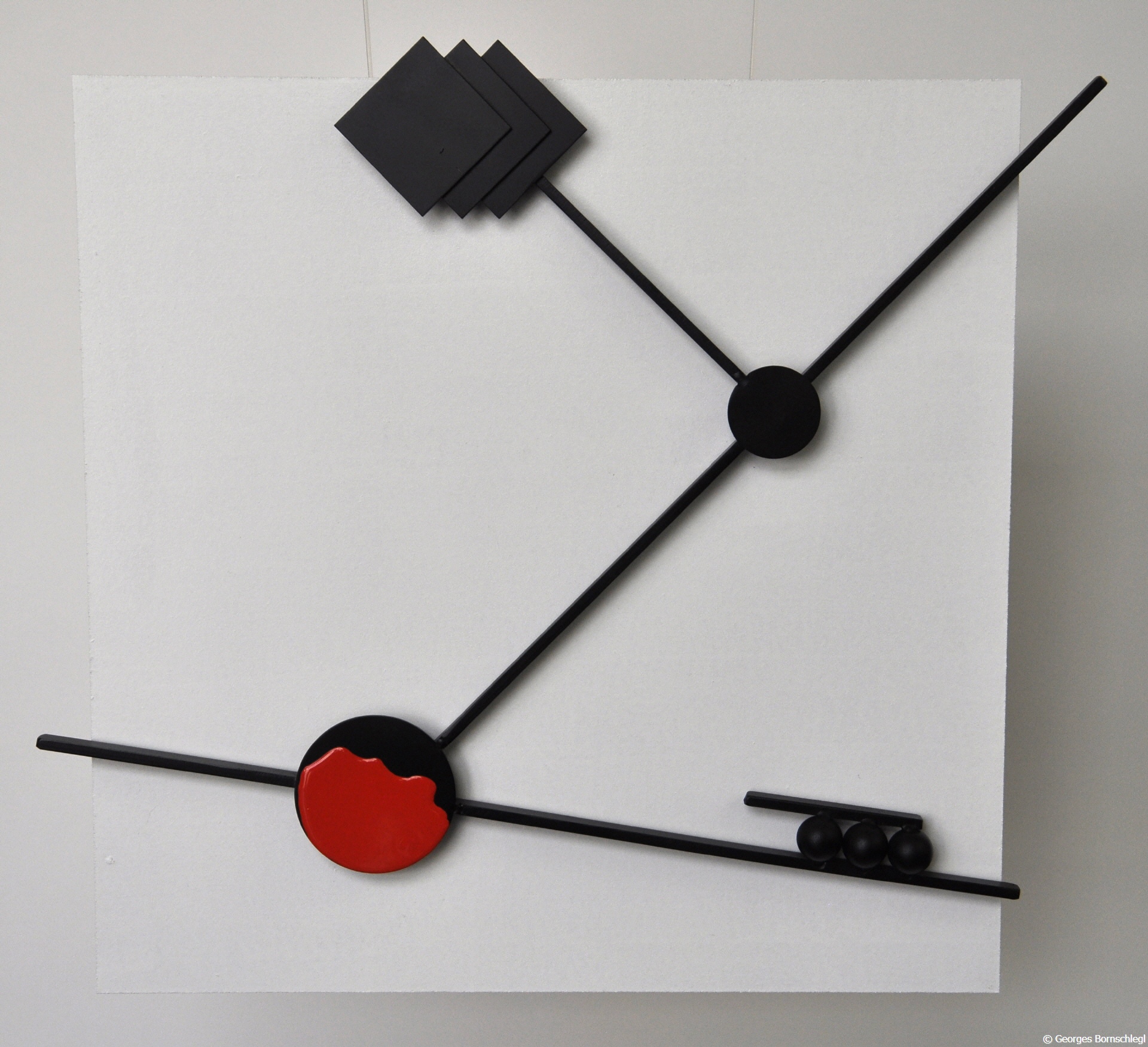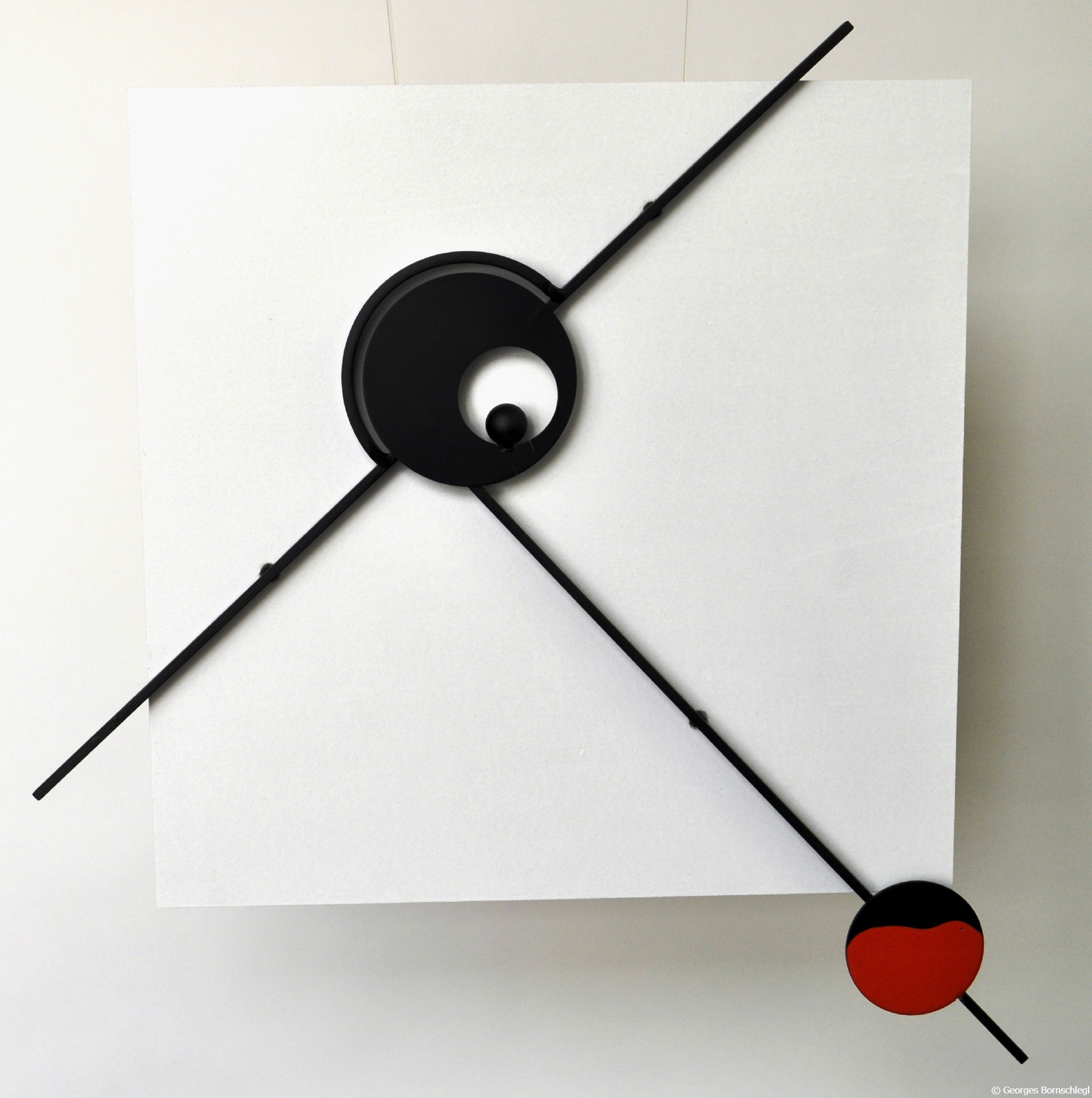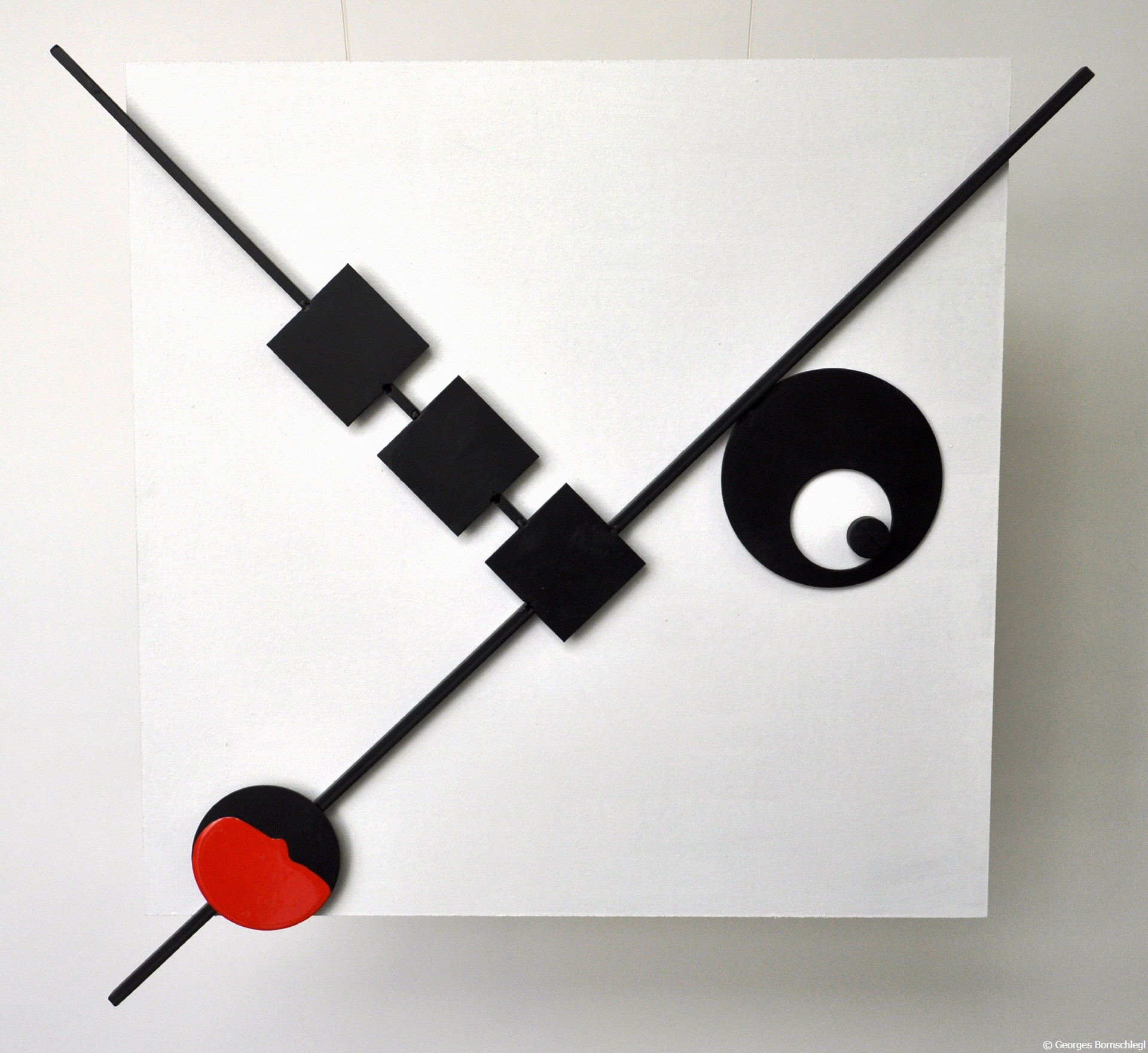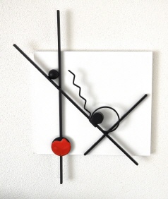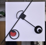 "My", Wandrelief aus der Serie "Red Dot", Stahl auf MDF, lackiert, Hintergrund 40x40 cm