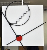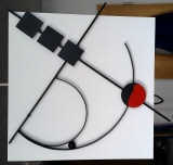 "Theta", Wandrelief aus der Serie "Red Dot", Stahl auf MDF, lackiert, Hintergrund 40x40 cm