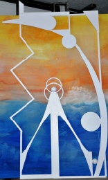 "Prometheus", Stahl, weiss lackiert, (ohne Hintergrund), 104 x 64 cm