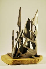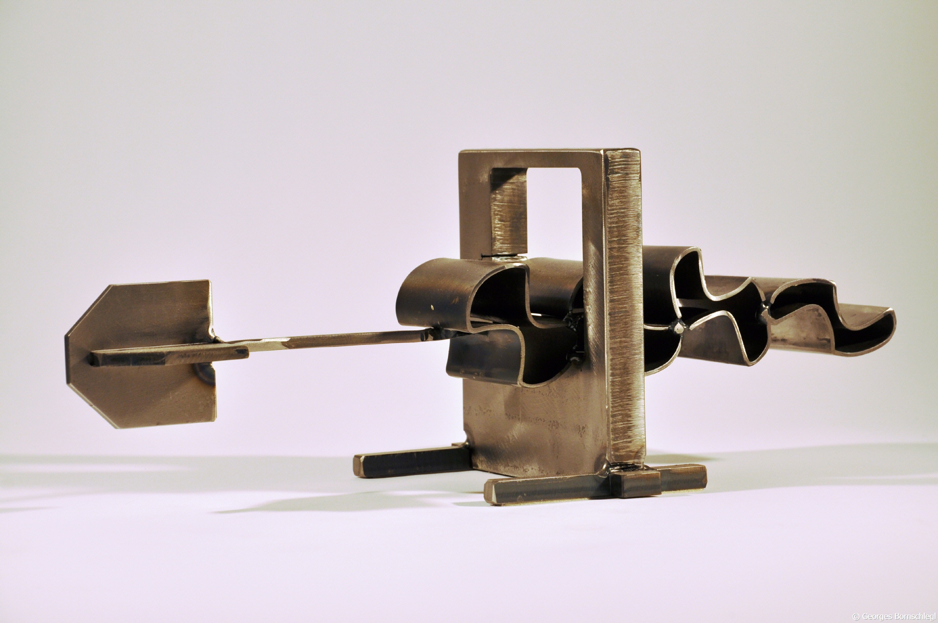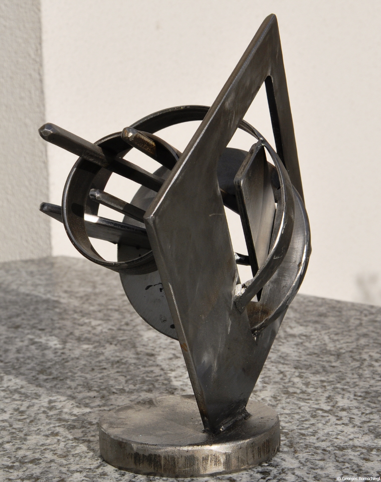 "Hommage an Fletcher Benton 1", Stahl zaponiert, 22 x 12 x 10 cm