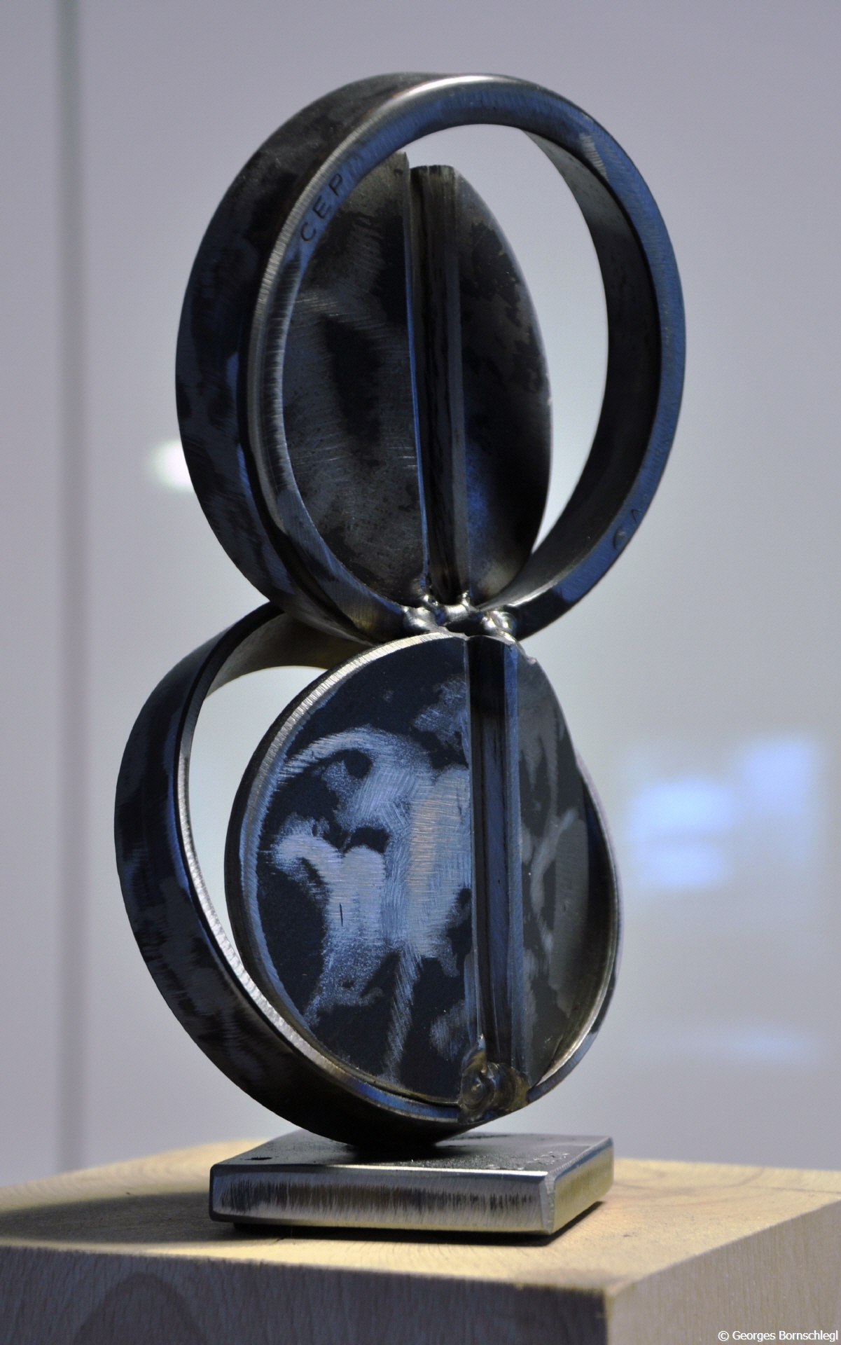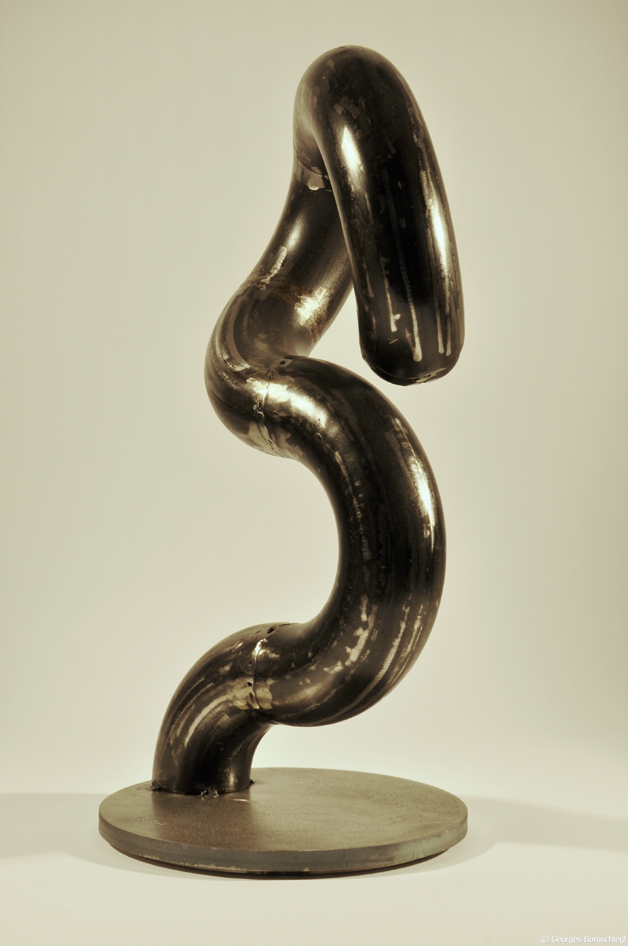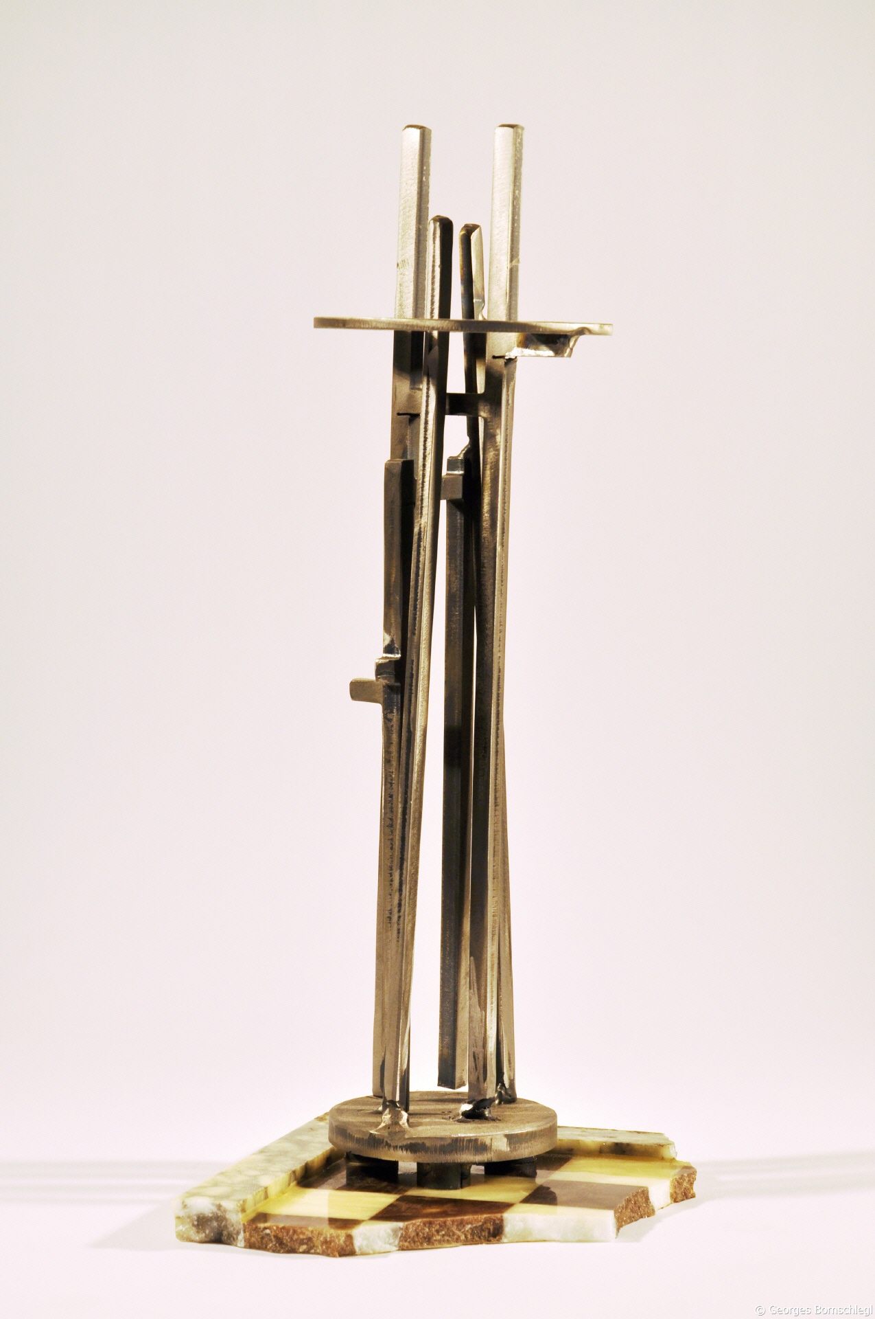 "Hommage an Fletcher Benton 2", Stahl zaponiert, 20 x 10 x 8 cm