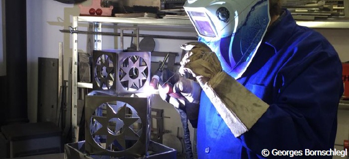 "Raumzeit", Hommage an Albert Einstein, Stahl, zaponiert, 17x30x16 cm